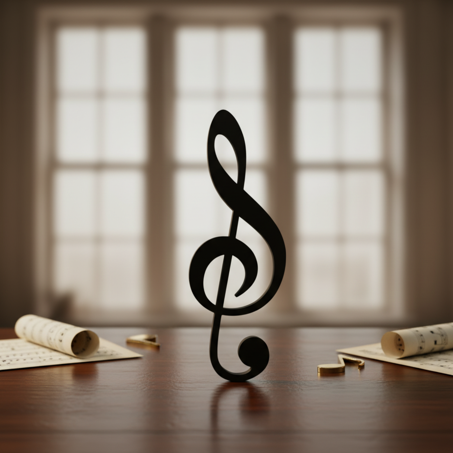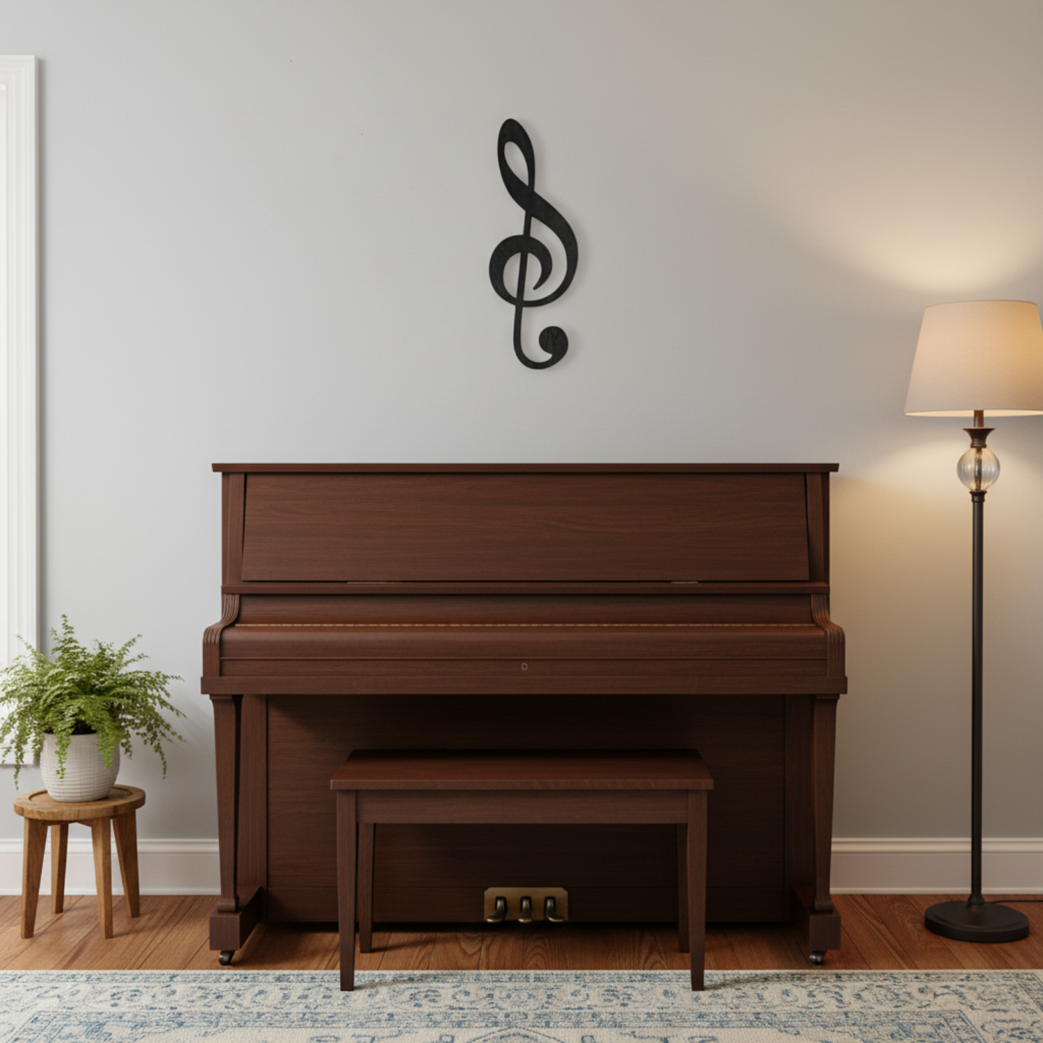En smuk G-nøgle udskåret i træ, perfekt til dig der elsker musik. Den passer flot som pynt på reolen, i vindueskarmen eller som en personlig gave til musikelskeren.